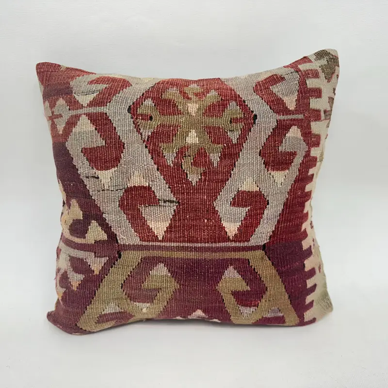 Almohada de tiro bordada hecha a mano, almohada de lino geométrico púrpura y gris