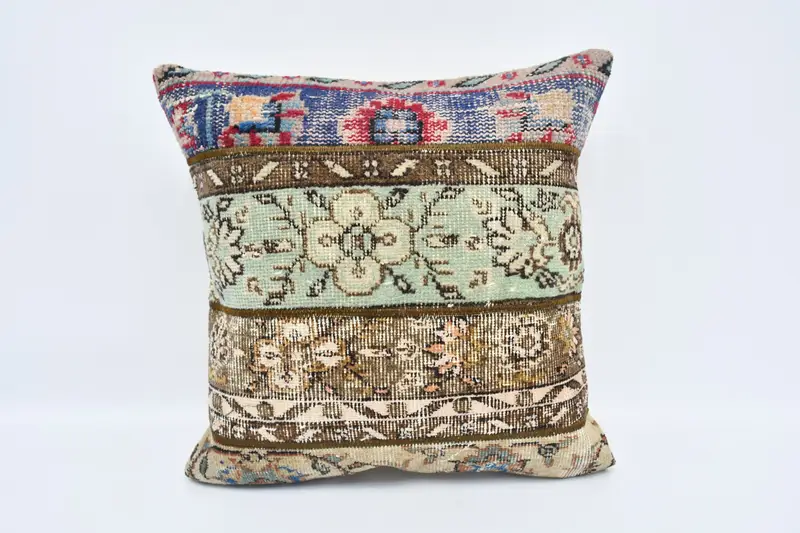 Almohada de lanzamiento bordada marrón y bronce 24x24, almohada de cáñamo vintage