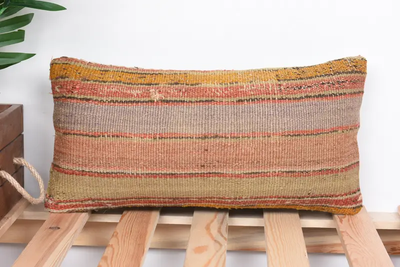 Almohada de rayas beige y bronce, almohada de tiro bordada 8x16