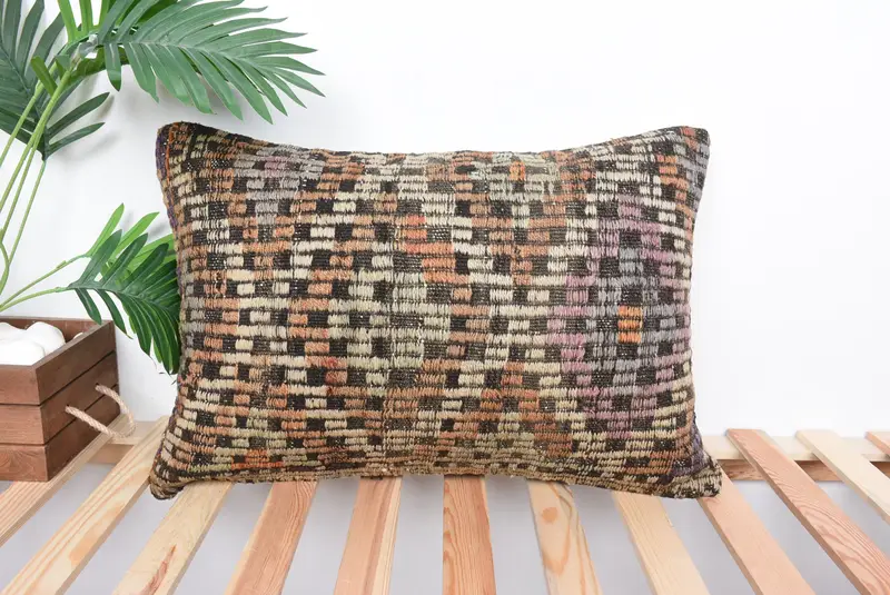 Almohada de lanzamiento del suroeste marrón y beige, cojín bordado hecho a mano