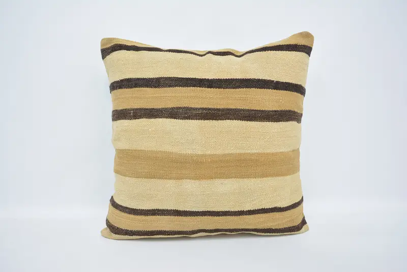 Almohada de tiro a rayas beige y marrón, almohada decorativa versátil de 28x28
