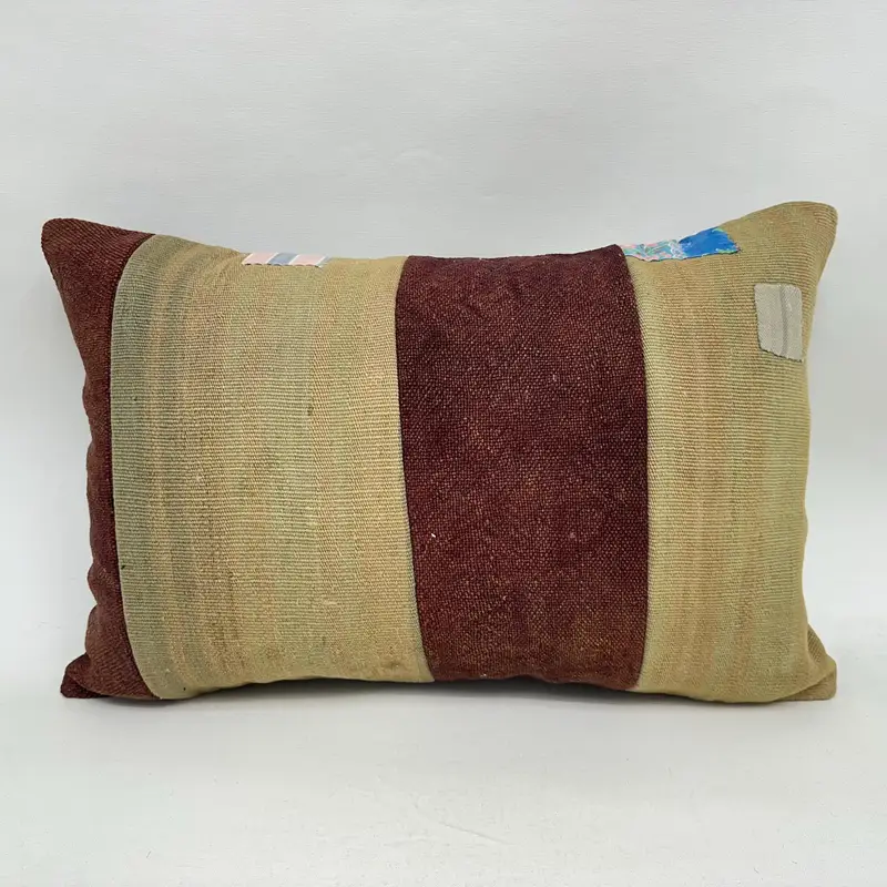 Almohada de lanzamiento de patchwork beige y rojo, cojín bordado hecho a mano