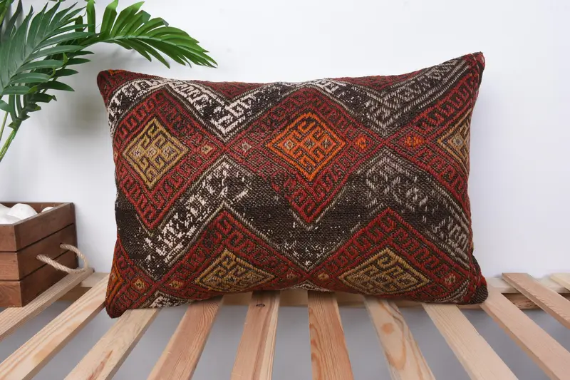 Almohada de lino geométrica roja y blanca, almohada de lanzamiento bordada de 16x24