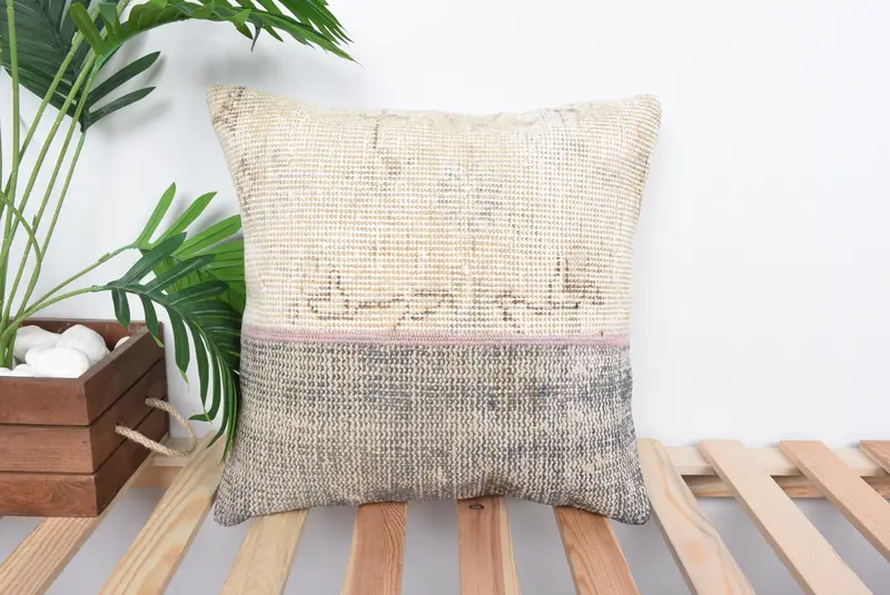 Almohada de tiro de lino hecha a mano, cojín de patchwork bordado
