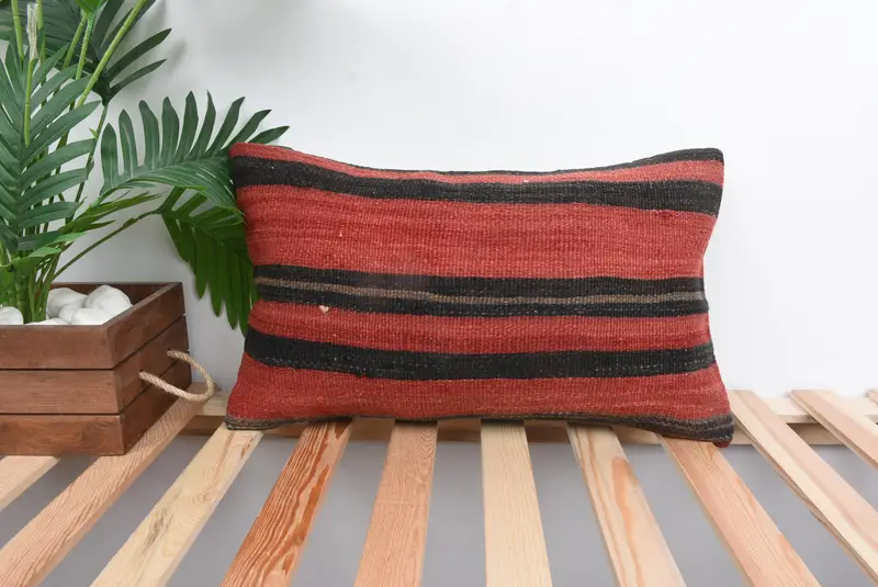 Almohada de tiro de rayas rojas y negras, almohada rectangular bordada