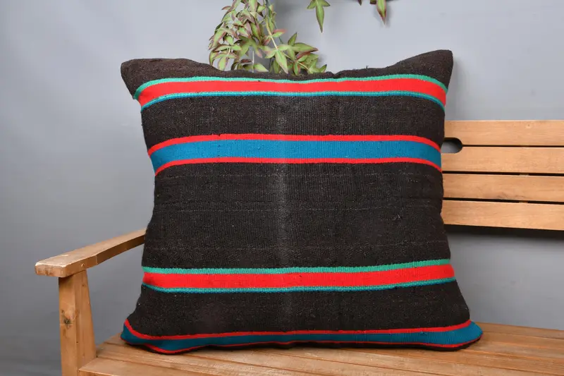 Almohada de tiro a rayas marrón y bronce, almohada de lino bordada 28x28