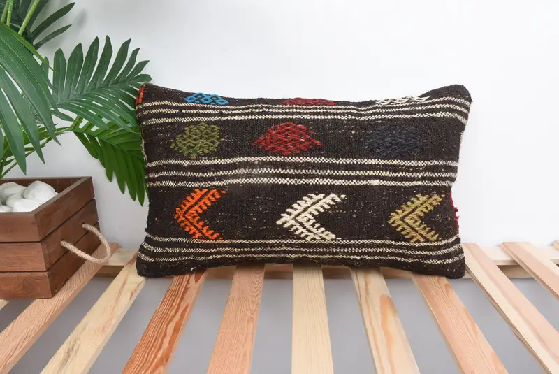 Almohada de tiro a rayas marrón y naranja, cojín hecho a mano de 12x20