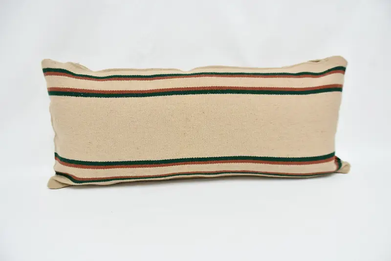 Almohada de tiro de rayas beige y roja de 16x36, almohada bordada vintage