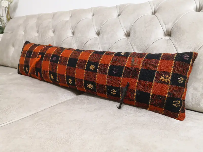 Almohada de lanzamiento de lana hecha a mano con patrón geométrico, almohada rectangular vintage