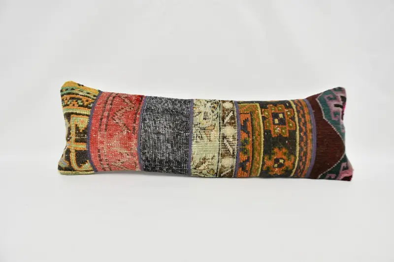 Almohada de lanzamiento de cáñamo Ombré bordado, almohada rectangular vintage de 12x36