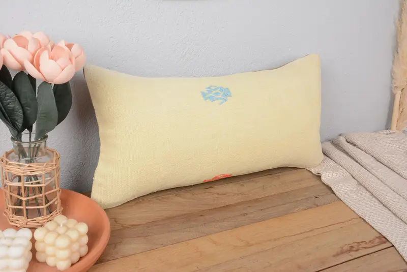 Almohada de lanzamiento bordada beige, cojín hecho a mano de 12x24 con patrón geométrico