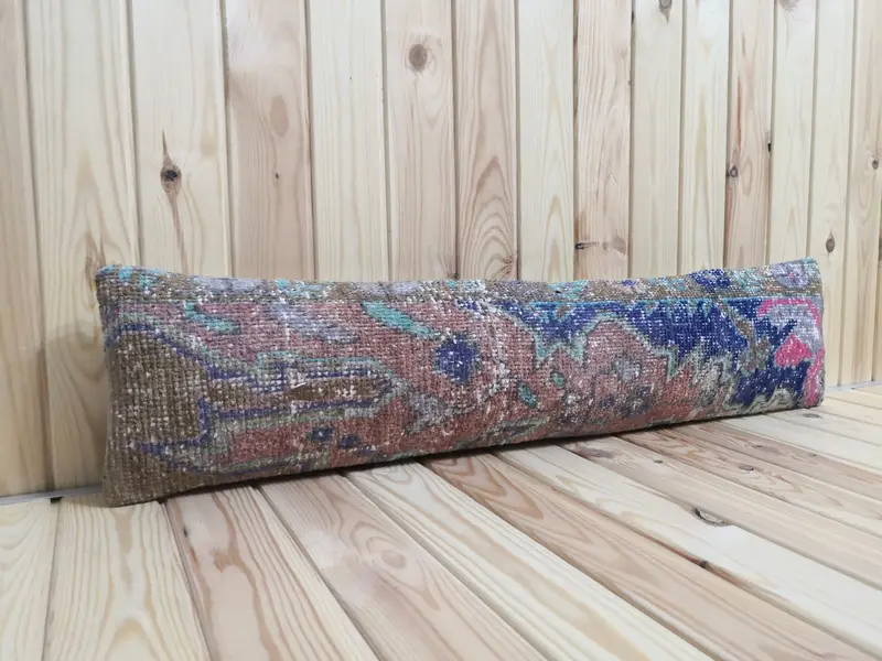 Almohada de lanzamiento de lana geométrica azul y gris hecha a mano, almohada rectangular vintage