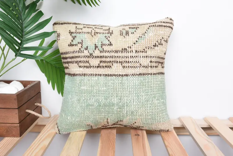 Almohada de tiro de lino verde bordado, cojín floral vintage