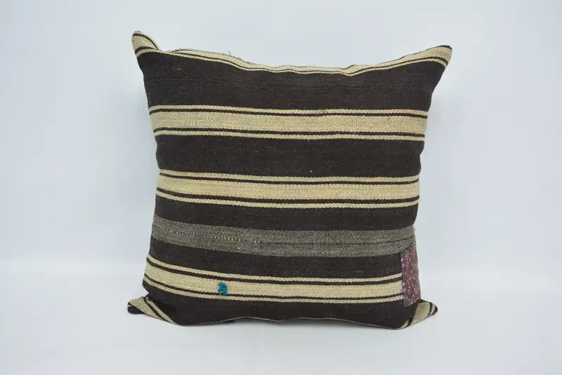 Almohada de tiro a rayas marrón y beige, almohada de cáñamo y algodón hecha a mano