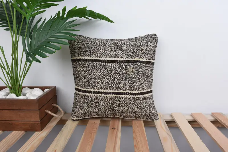 Almohada Kilim de rayas marrones, almohada de lanzamiento bordada 14x14