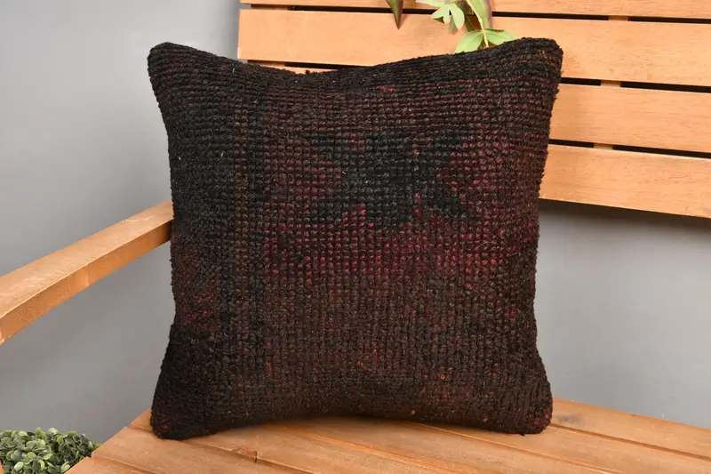 Almohada de tiro bordada marrón, cojín vintage hecho a mano