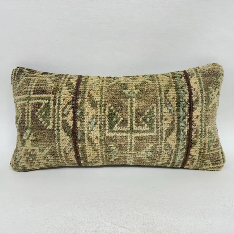 Almohada de lanzamiento de patchwork beige y verde, almohada rectangular bordada