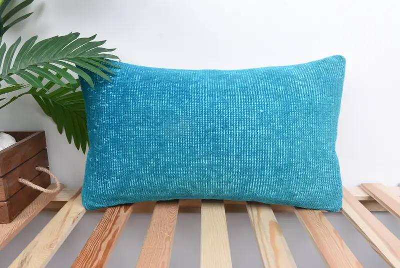 Almohada de tiro verde del suroeste hecha a mano, almohada de lino bordada de 12x20