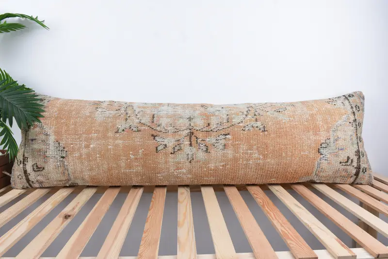 Almohada de tiro floral marrón y beige hecha a mano, cojín rectangular de 16x56