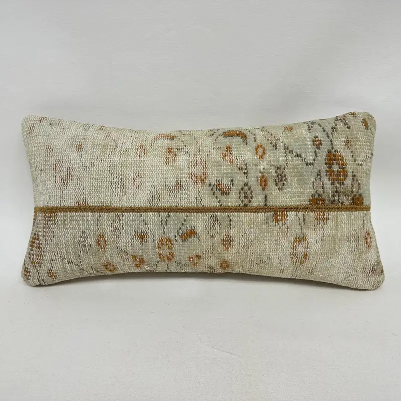 Almohada patchwork beige y marrón, almohada de tiro bordada 12x24