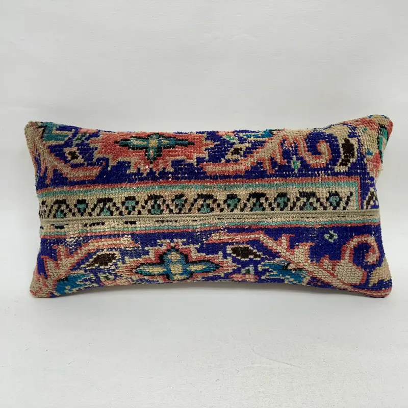 Almohada de tiro patchwork azul y rojo, cojín bordado hecho a mano