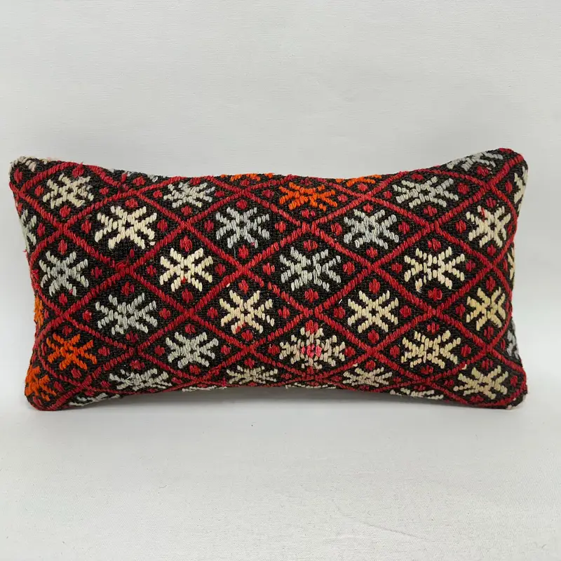 Almohada de lanzamiento bordada del suroeste hecha a mano, cojín rojo vintage de 10x20