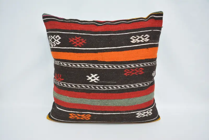 Almohada de tiro Paisley marrón y rojo, almohada de cáñamo bordada 32x32