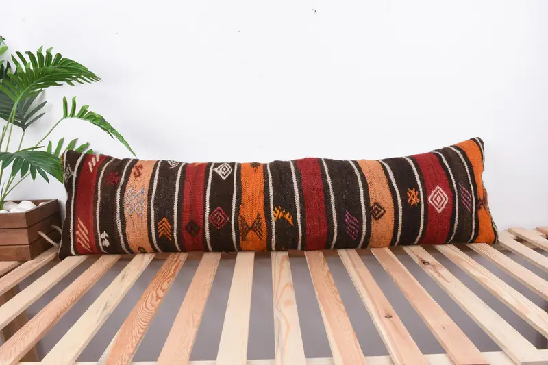 Almohada de rayas marrones y rojas, almohada de tiro vintage bordada