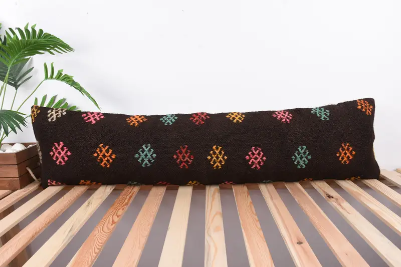 Almohada de tiro del suroeste bordada, cojín marrón vintage con detalles en arco iris