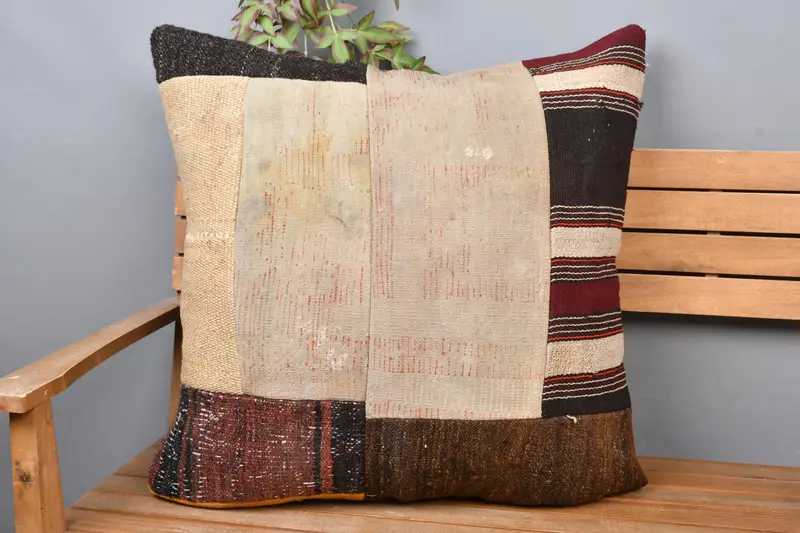 Almohada bordada, 28x28 beige y naranja patchwork, hecha a mano