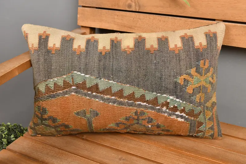Almohada de lanzamiento geométrico rojo y marrón, almohada rectangular hecha a mano