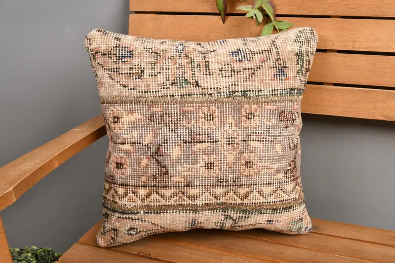 Almohada de lanzamiento de patchwork beige y marrón, almohada bordada vintage