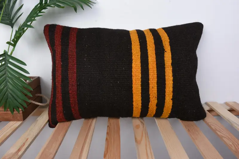 Almohada bordada de rayas marrones y naranjas, almohada de tiro hecha a mano de 16x24