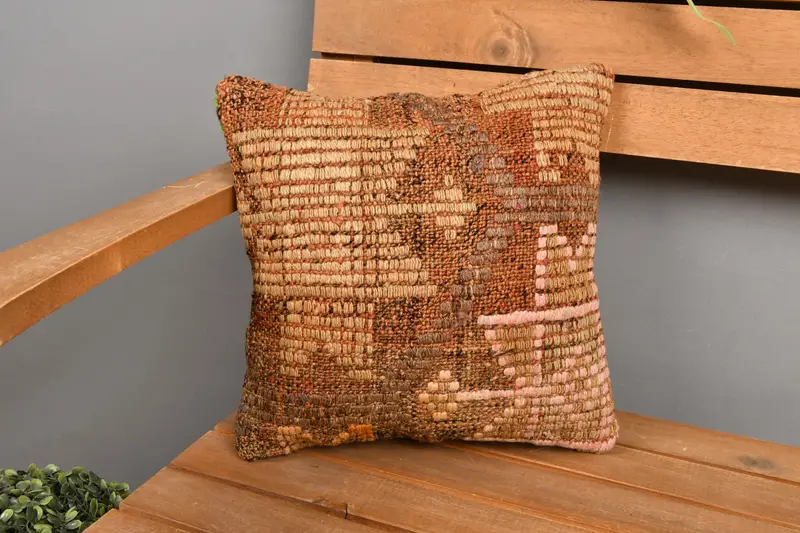 Almohada de lanzamiento bordada del suroeste beige, cojín vintage hecho a mano
