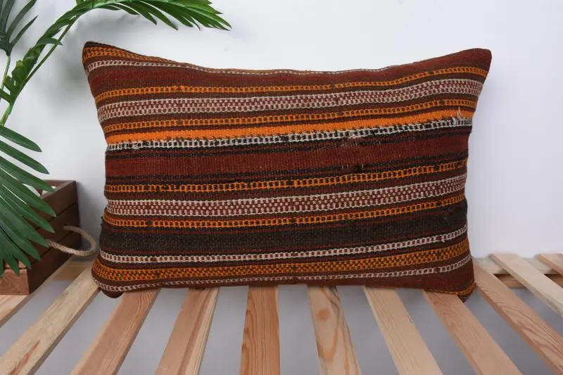 Almohada de tiro de lino bordado, cojín a rayas vintage de 16x24