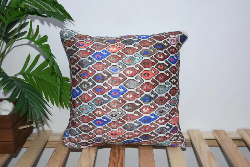 Almohada de tiro de rayas rojas y verdes, cojín de lino bordado