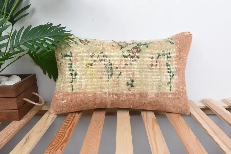 Almohada de lanzamiento floral beige y naranja, almohada versátil de 20x12