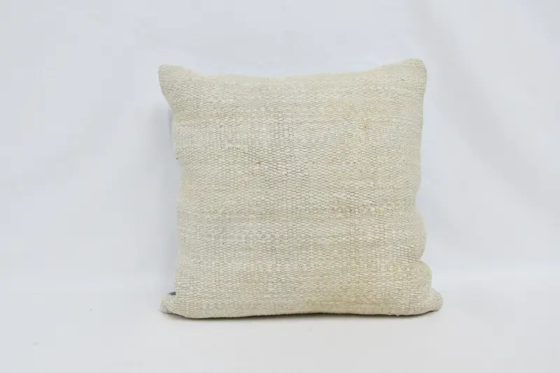 Almohada de lanzamiento de patchwork beige, cojín de cáñamo y lana hecho a mano