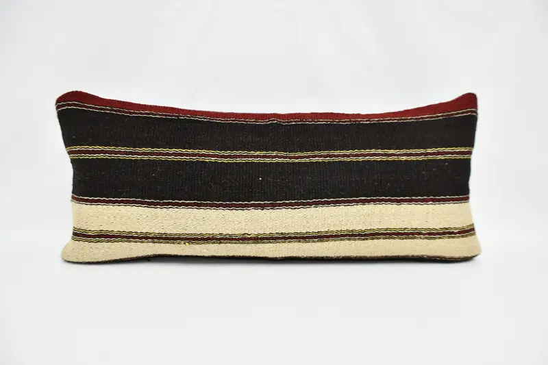 Cojín a rayas hecho a mano, almohada de lanzamiento rectangular marrón y beige