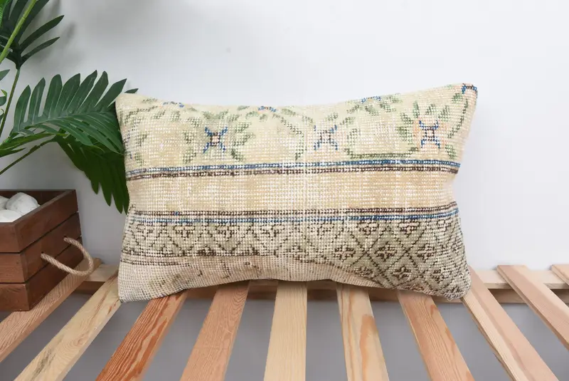 Almohada del suroeste beige y bronce, almohada de tiro hecha a mano de 12x20