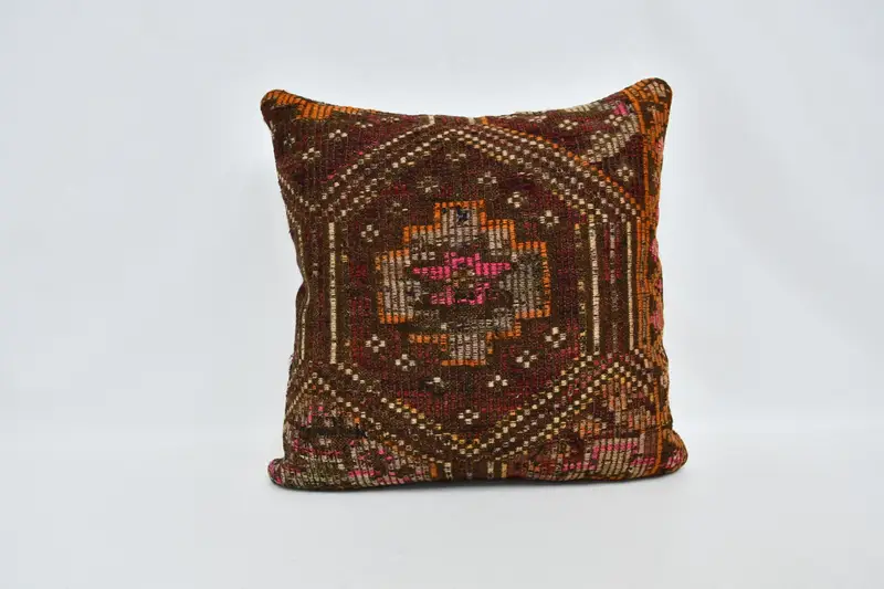 Almohada de lanzamiento bordada marrón y naranja hecha a mano de 24x24, cojín vintage