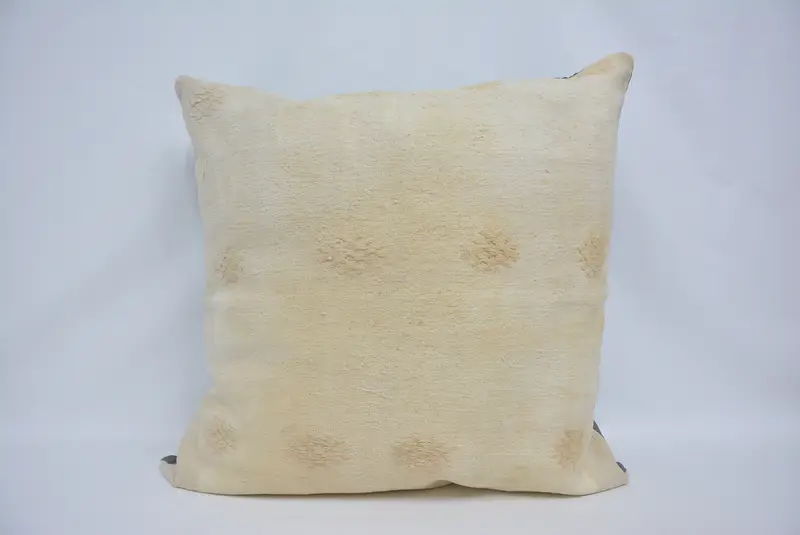 Almohada de tiro vintage bordada, almohada de lunares beige hecha a mano