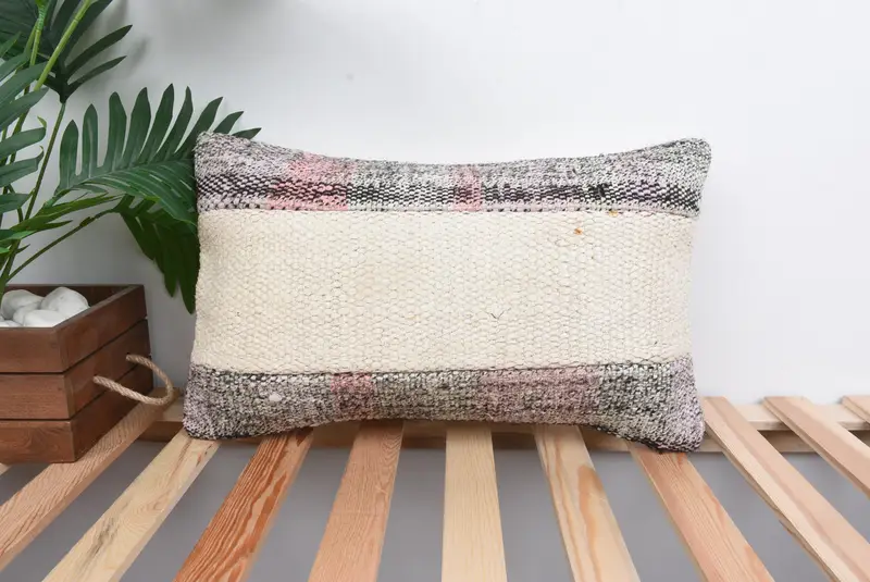Almohada de lanzamiento de patchwork marrón y beige hecha a mano, cojín rectangular de 12x20