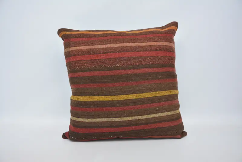 Almohada de tiro a rayas rojas y marrones, cojín bordado 24x24