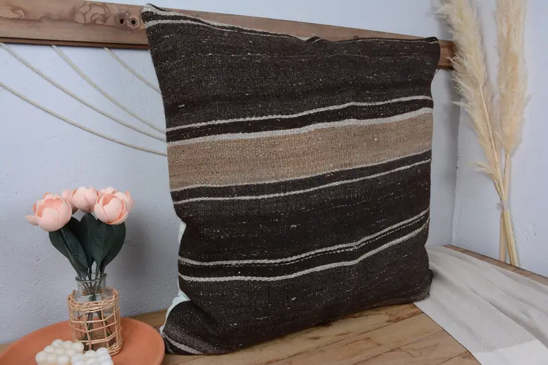 Almohada de lanzamiento de patchwork marrón y beige, cojín bordado 32x32