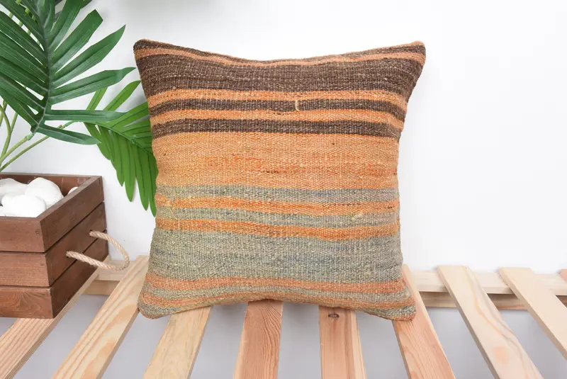 Almohada de tiro a rayas naranja y marrón, cojín bordado 14x14