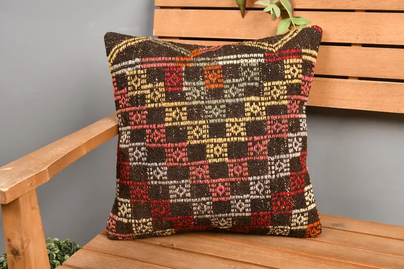 Almohada de lanzamiento bordada marrón y roja, cojín vintage 16x16