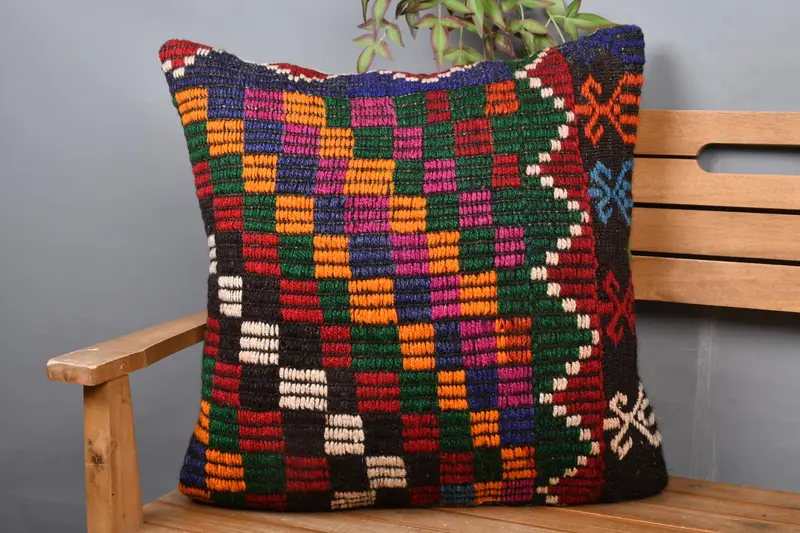 Almohada de tiro bordada roja y verde, cojín geométrico vintage