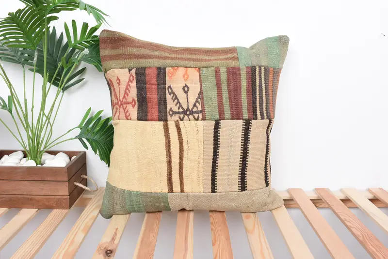 Almohada de lanzamiento de patchwork beige y marrón, cojín bordado 22x22