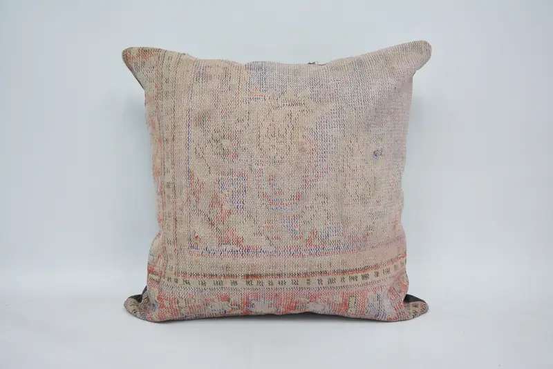 Almohada de tiro de cáñamo bordado beige y bronce, decoración vintage